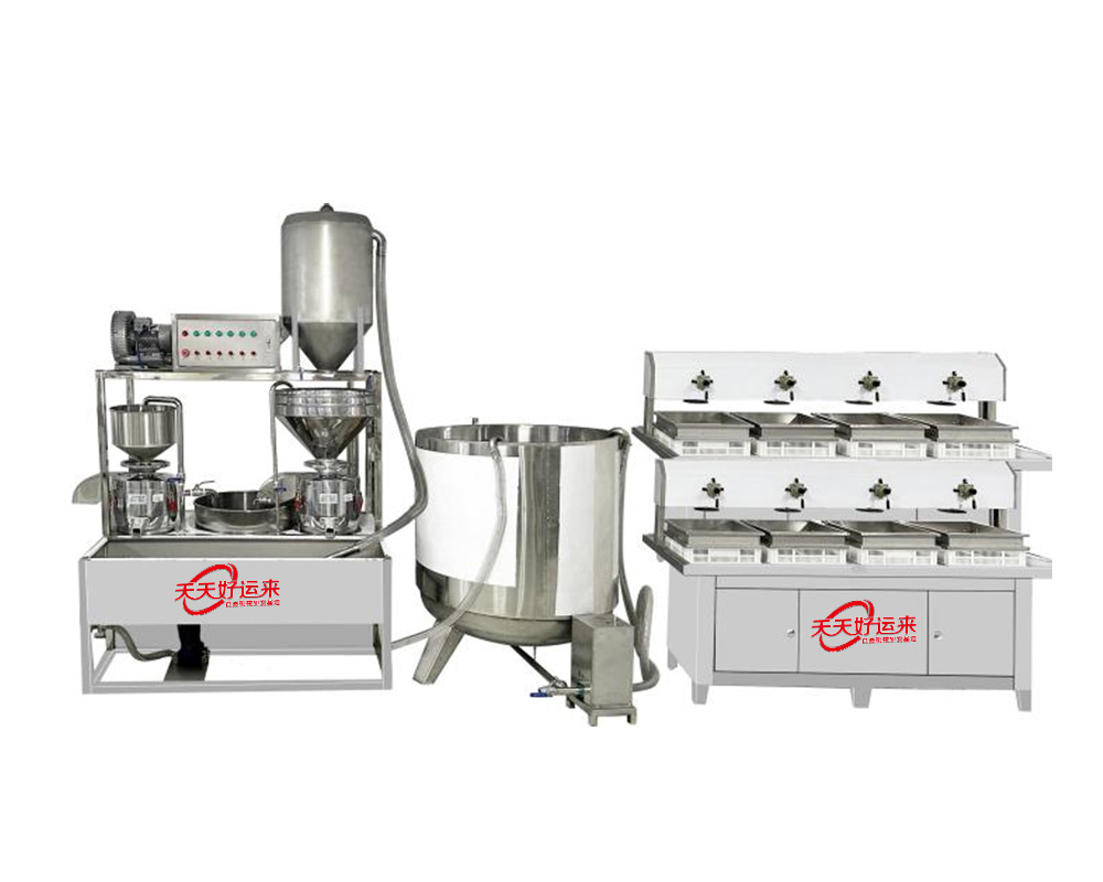 我公司生產(chǎn)豆腐機在國內(nèi)是較早的企業(yè),多年來通過對設備的不斷改進,利用現(xiàn)代科技與傳統(tǒng)工藝的完美結合。使設備外觀設計美觀、智能化高,操作簡單,主要有自動上豆系統(tǒng)、磨漿機系統(tǒng)、拌渣提升系統(tǒng)、煮漿桶(蒸氣機用戶自備)、成型機等組成。機器采用不銹鋼制造,干凈衛(wèi)生,技術領先,質量可靠,經(jīng)久耐用。實現(xiàn)了批量生產(chǎn)過程自動化,具有高效、省時、耗能低等優(yōu)點。采用先進空真上豆技術和連續(xù)磨漿技術,瞬間加熱工藝,保證了蛋白質不受破壞,從而使生產(chǎn)出來的豆制品營養(yǎng)更豐富,味道更鮮美。工藝流程: 將浸泡好的黃豆由高速分離磨漿機加工,排出豆渣,產(chǎn)出的豆?jié){經(jīng)過蒸汽加熱達到去腥,并煮漿均質,并添加輔助原料消泡、凝固劑(如鹵水、石膏、內(nèi)脂、酸漿等)、成型和深加工處理便可產(chǎn)生出營養(yǎng)豐富的豆制品如:豆?jié){、豆腐腦、豆腐、豆干、豆皮、素雞、豆泡等制品,適用于大型賓館、超市、企業(yè)食堂、工程店及食品廠批量加工使用。