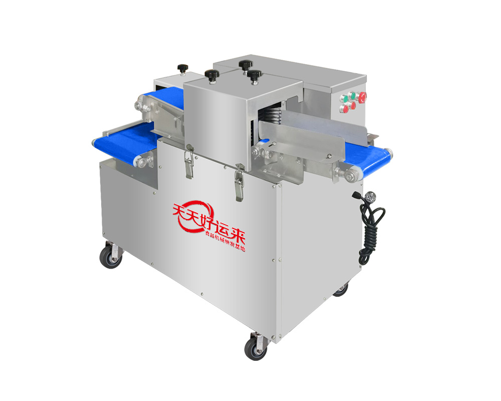 采用輸送帶進料、出料,切片厚度可按照用戶要求制作,可快速更換不同的刀組,滿足用戶各種規(guī)格的切片要求。能快速拆裝進、出料 輸送帶及圓刀片組,整機采用防水設(shè)計,全不銹鋼制作,可直接用水沖洗機器。產(chǎn)品切割整齊,誤差非常小,方便操作,能實現(xiàn)產(chǎn)品快 速包裝。標配尺寸25毫米;其它尺寸可定制,主切鮮肉冷鮮肉。一次成條,二次成丁。 | |